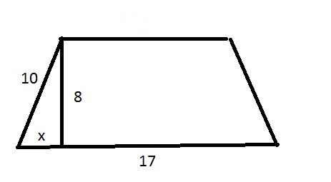 В равнобедренной трапеции известны длины :боквой стороны-10 см,больего основания -17 см,и высоты -8 см.Найдите длину меньшего основания