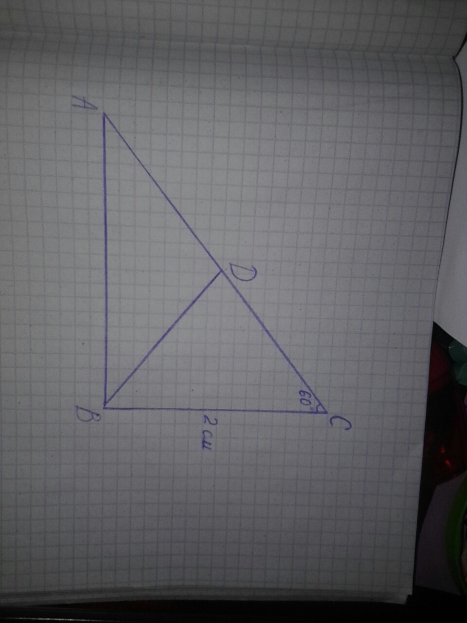 Дано: ΔABC, ∠ABC=90° , ∠AСB= 60° , ∠ АВD =30°, ВС=2см