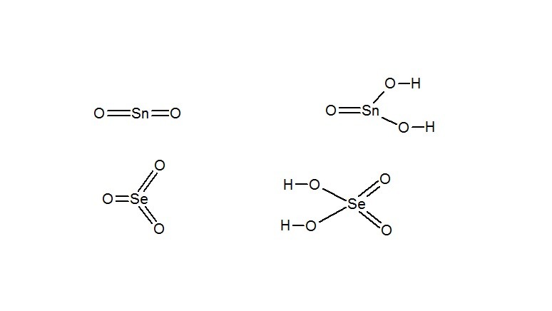 Исходя из положения селена и олова в периодической системе, составьте формулы гидроксида и оксида, отвечающие их высшей степени окисления. Изобразите формулы этих соединений графически. Приведите по одному примеру уравнений окислительно-восстановительных реакций с их участием.