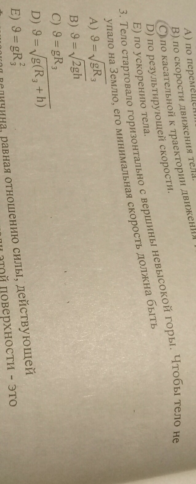 Тело стартовало горизонтально с вершины невысокой горы.Чтобы тело не упало на Землю,его минимальная скорость должна быть?Напишите формулу-тут связано радиусом?