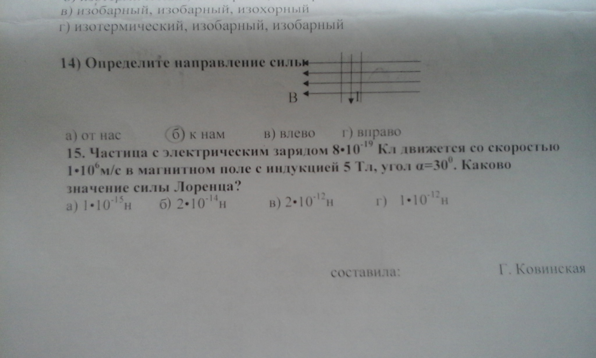 F=q*B*v*sinα=8*10^-19*5*10^6*0.5=2*10^-12 H (в)