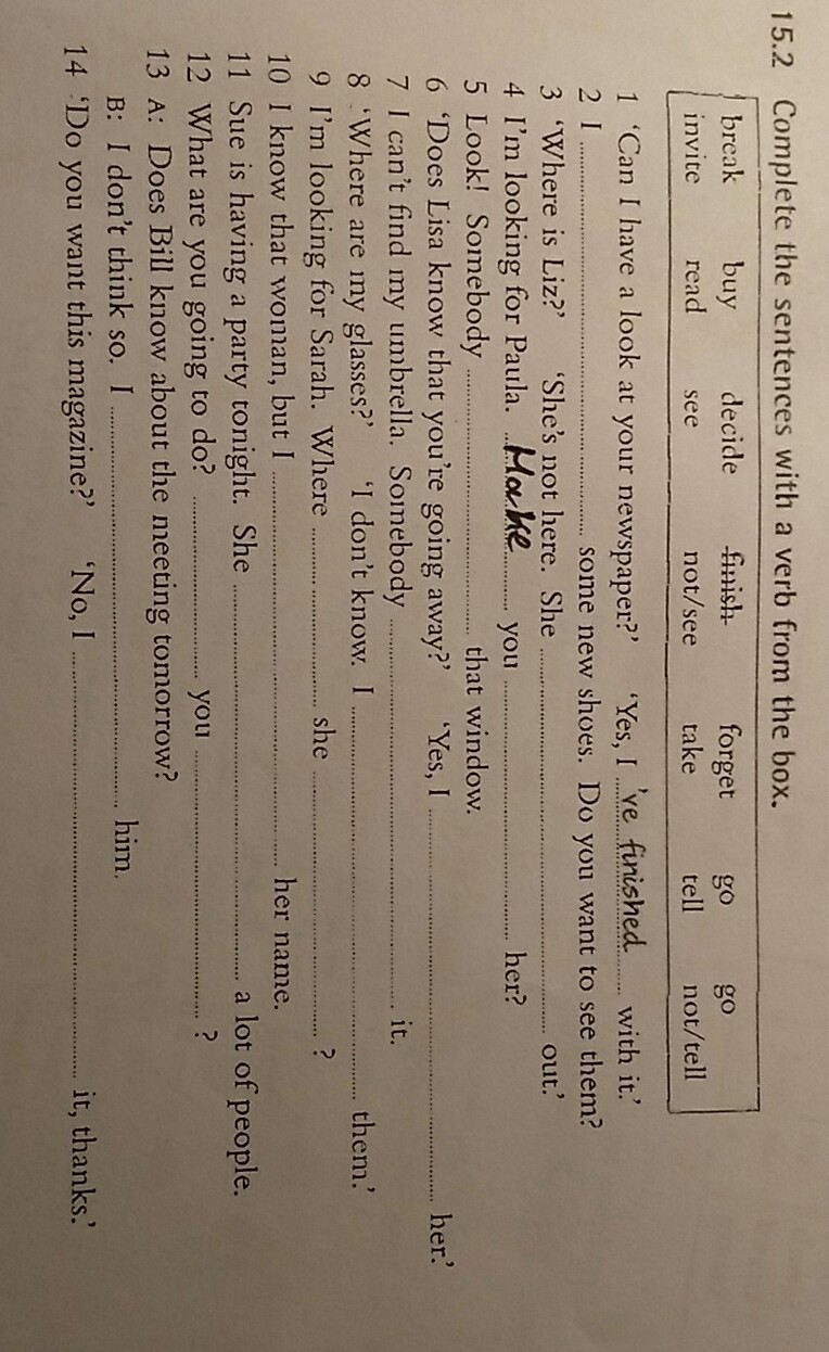 6 Does Liza know that you 're going away? Yes, I have told her