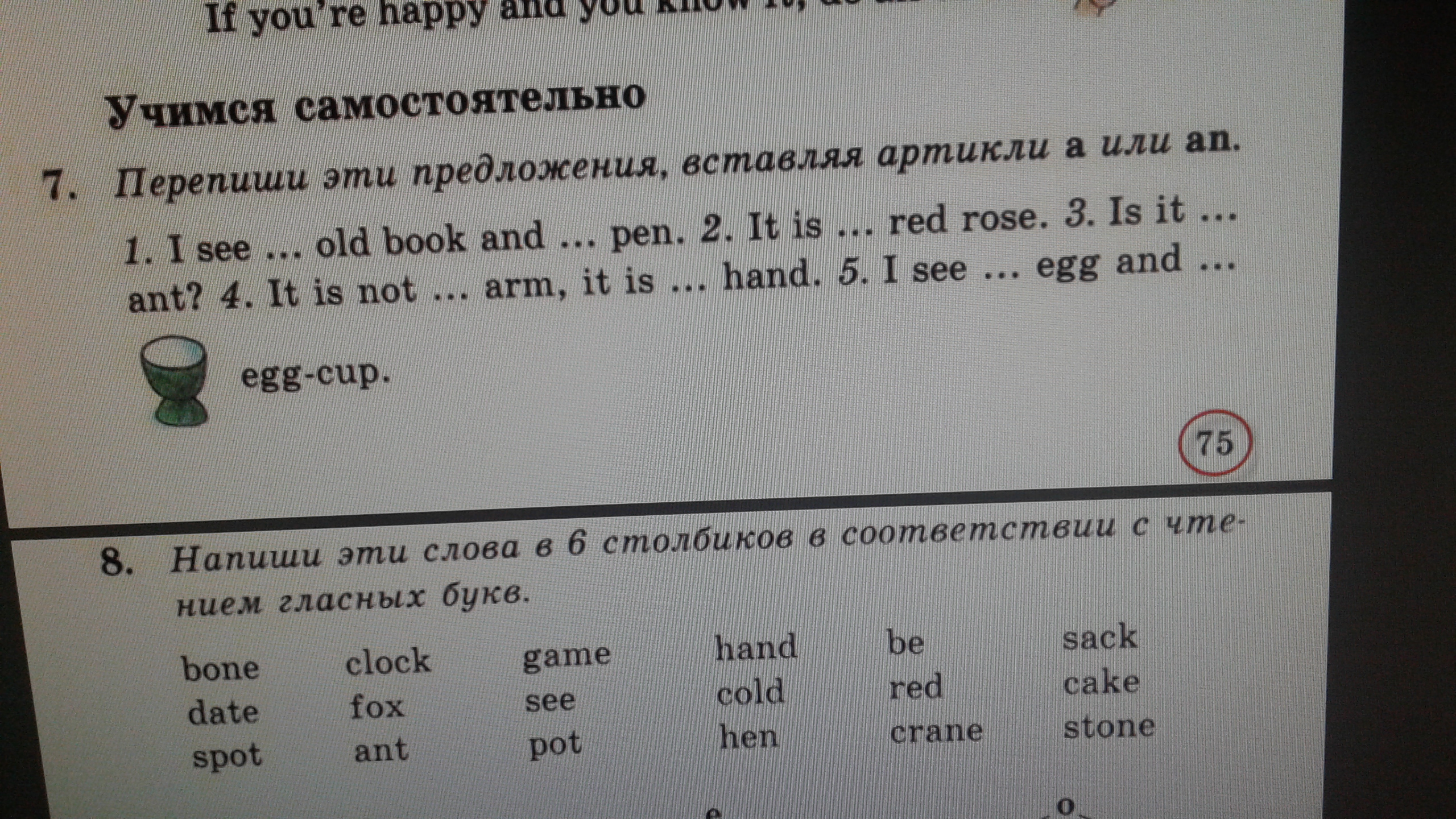 I see an old book and a pen. 2. It is a red rose. 3. Is it an ant? 4. It is not an arm, it is a hand. 5. I see an egg and an egg-cup