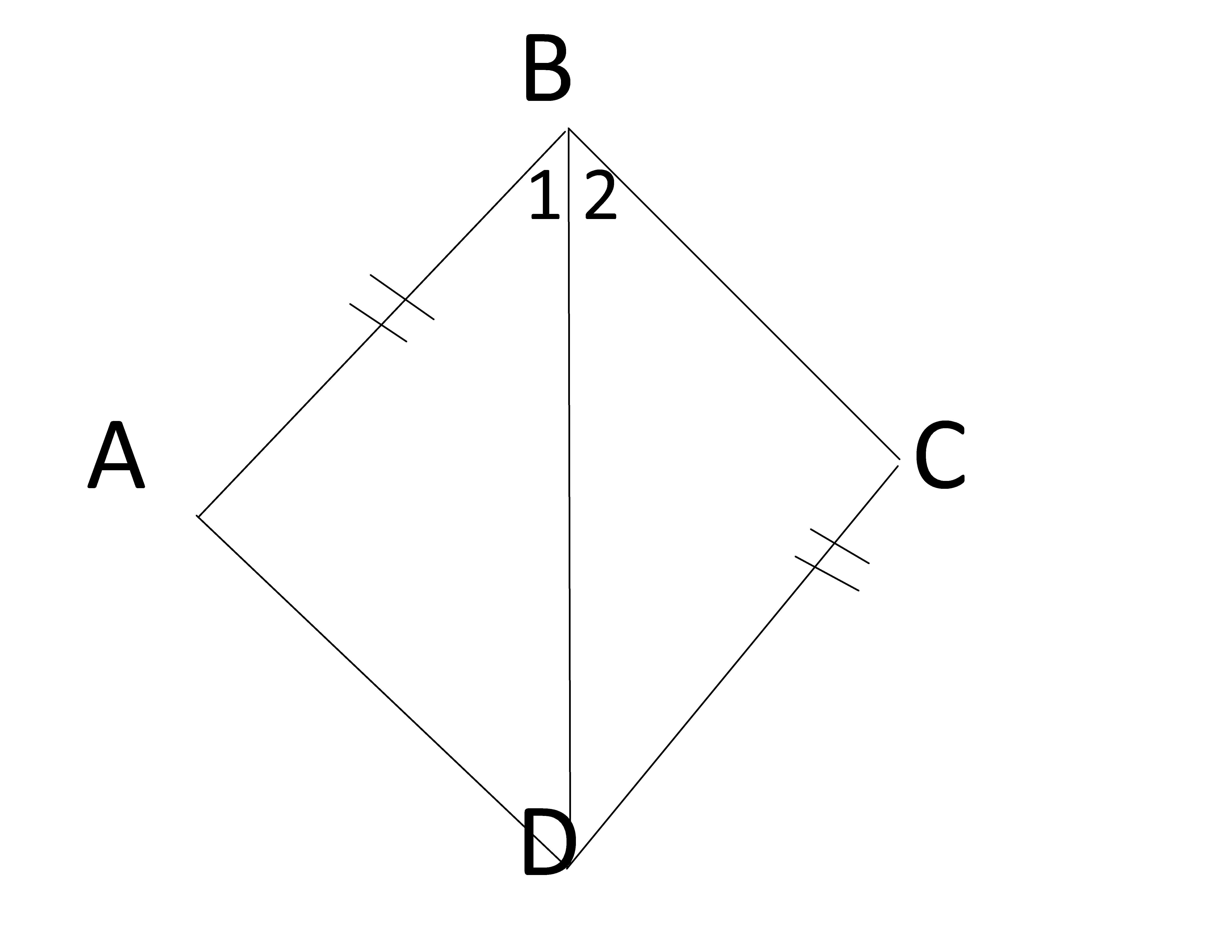 На рисунке AB=BC , угол 1 равен углу 2.Докажите что AD=DC