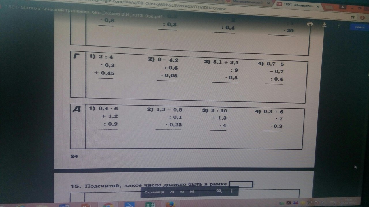 д) 0,4*6=2,4+1,2=3,6:0,9=4