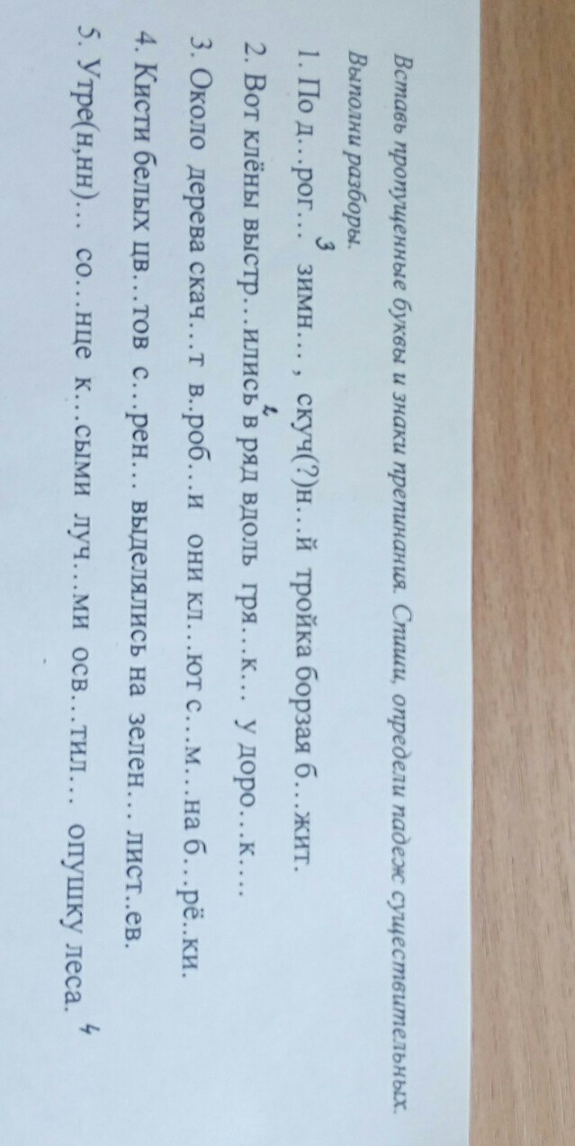 помогите пожалуйста вставить пропущенные буквы и знаки препинания,опредилить падеж сущ. выполнени марфологические разборы