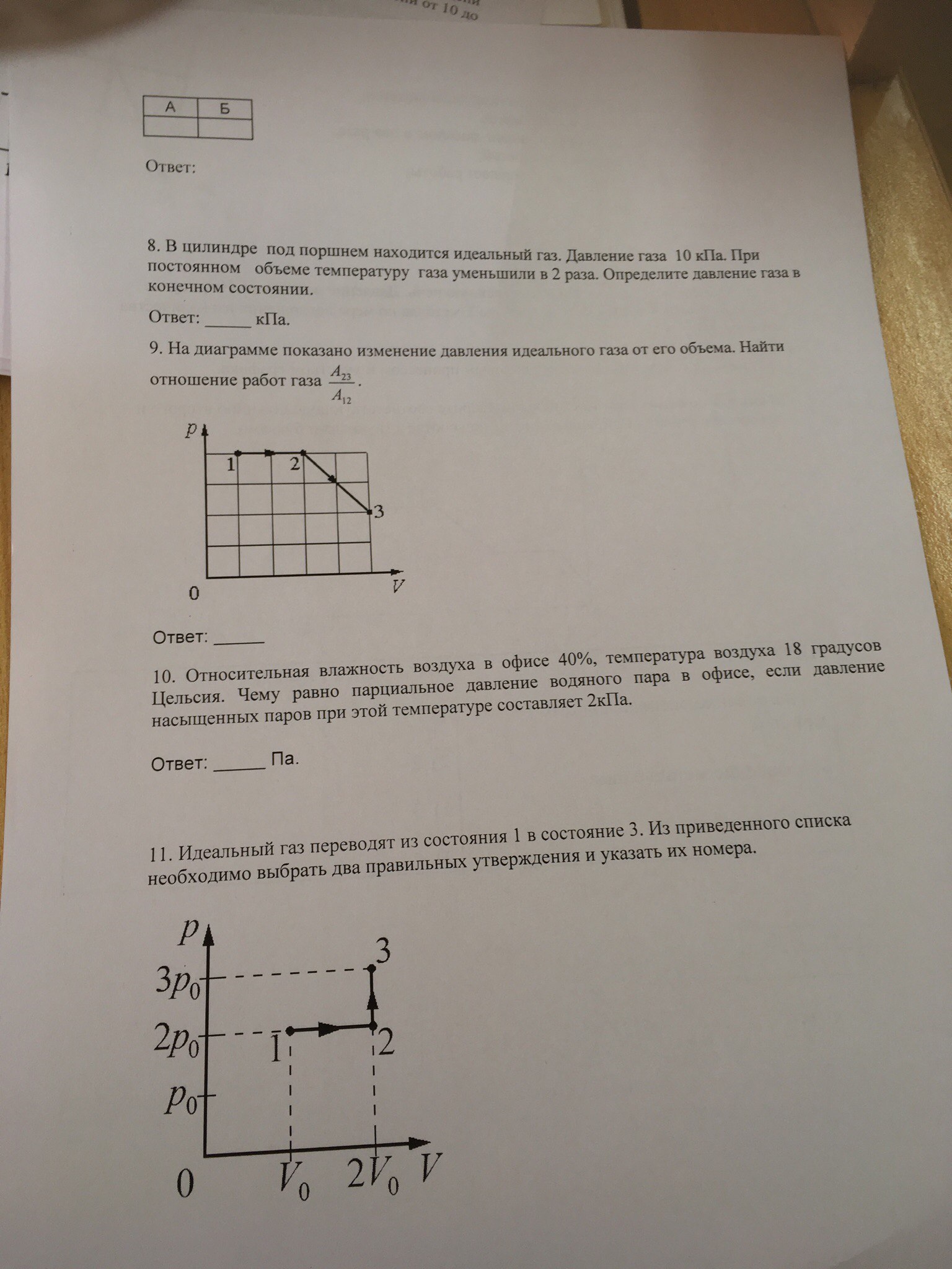 8) T2=0,5*T1 При V=const P1/P2=T1/T2 P2=P1*T2=10*0,5*T1/T1=5 кПа