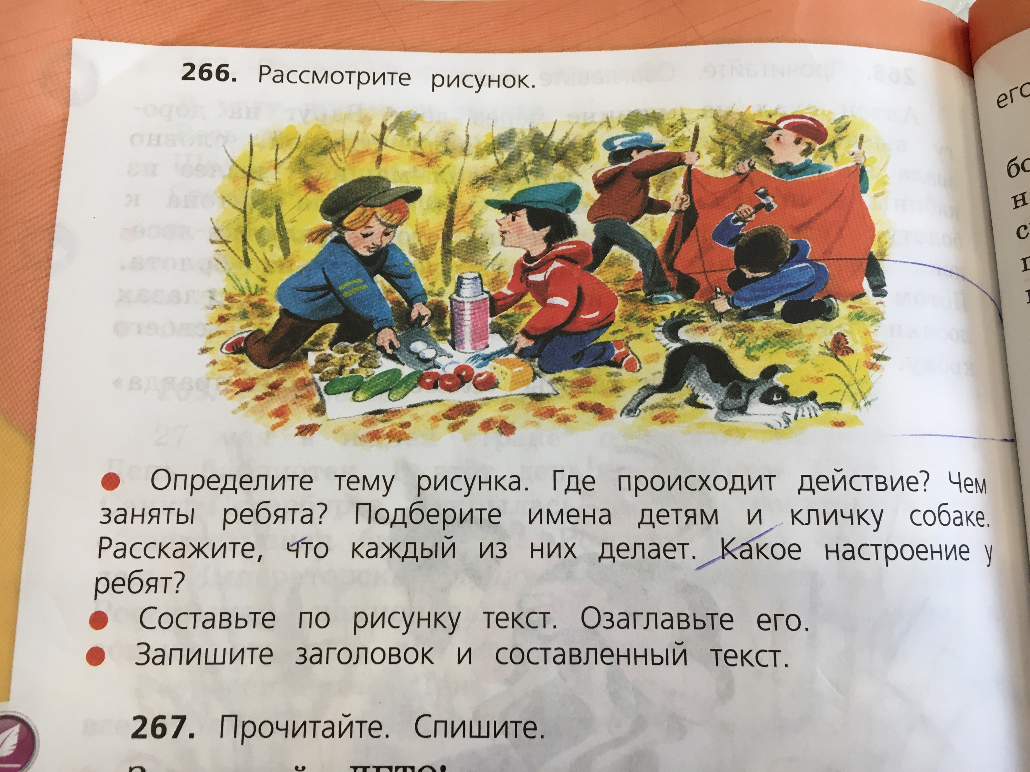 Один раз мы с классом пошли в лес.Мы будем спать в палатках.Я и мой друг пытались поставить палатку,а Коля и Дима ели на природе.Скоро мы разожгли костер.И вместе дружно отдыхали под синем небом,над нашими головами пролетали птички.В общем отдых удался!