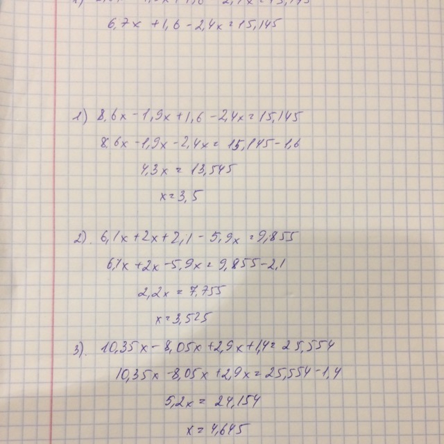 1)8,6х – 1,9х + 1,6 – 2,4х = 15,145.