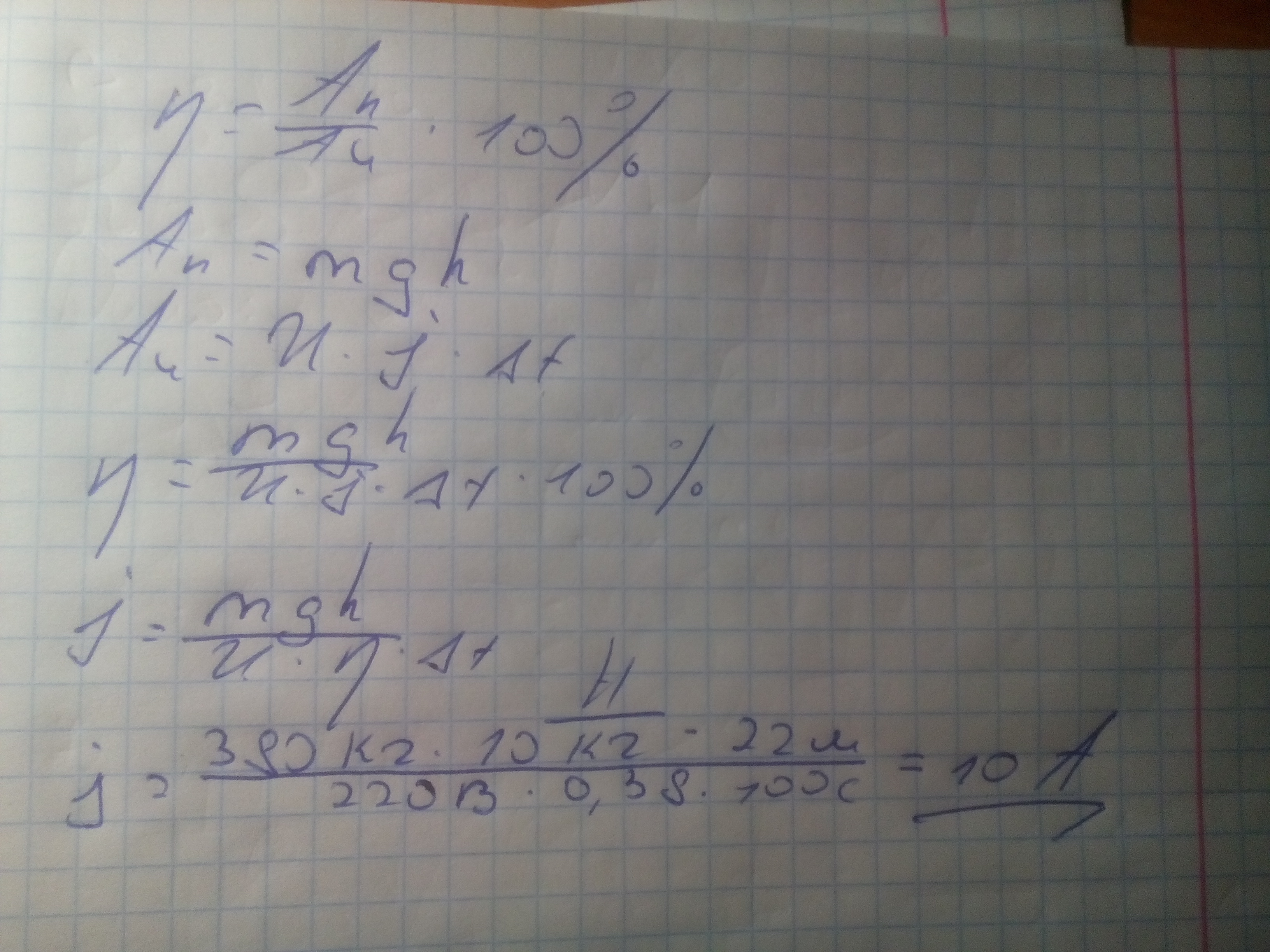 Башенный кран равномерно подымает груз массой 380 кг на высоту 22 м за 100с определите ток в электро двигателе при напряжение 220 В если гно что КПД электро двигателя крана равен 38 процентов.
