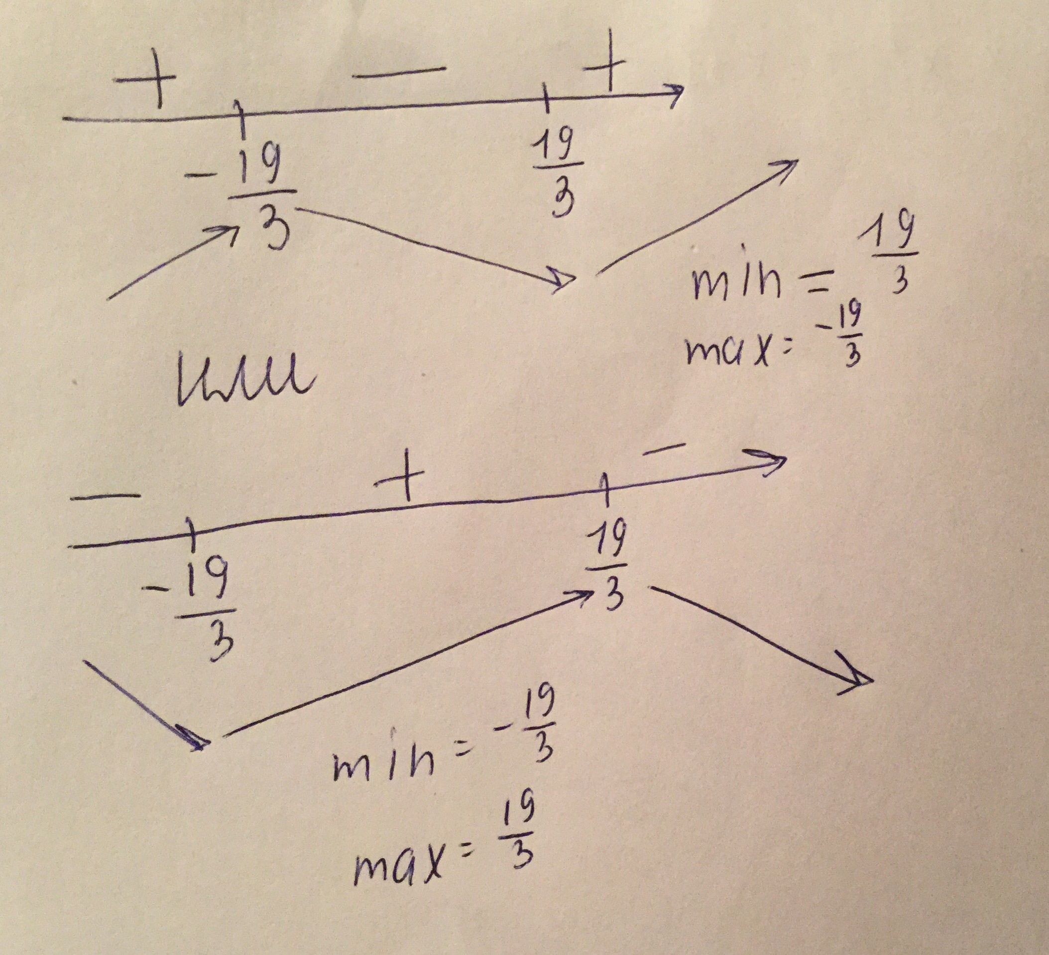 При переходе от минуса к плюсу - минимум. При переходе от плюса к минусу-максимум