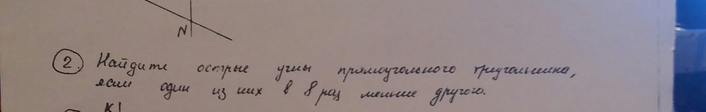 Рассмотрим треугольник АВС ( прямоугольный ). Так как треугольник прямоугольный значит сумма двух острых углов равна 90 градусов