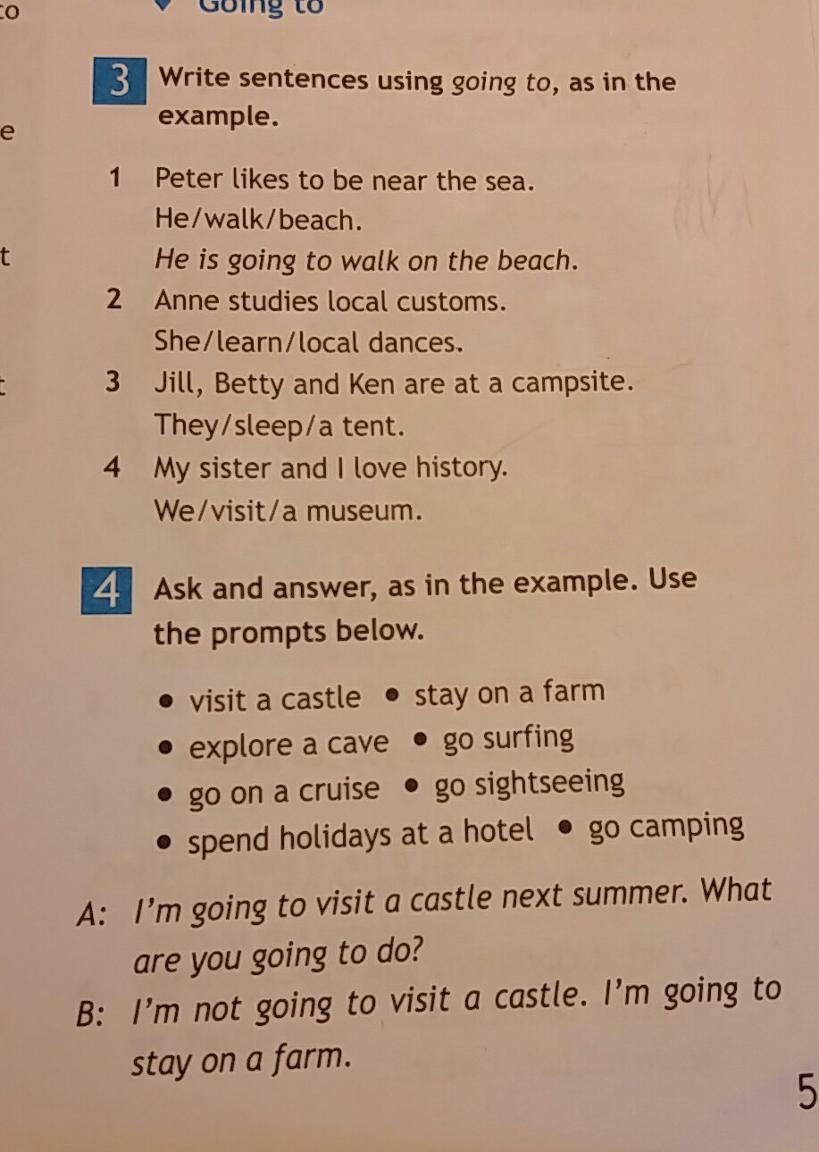 Упражнение [3]2 She's going to learn local customs.3 They're going to sleep in a tent.4 We're going to visit a museum