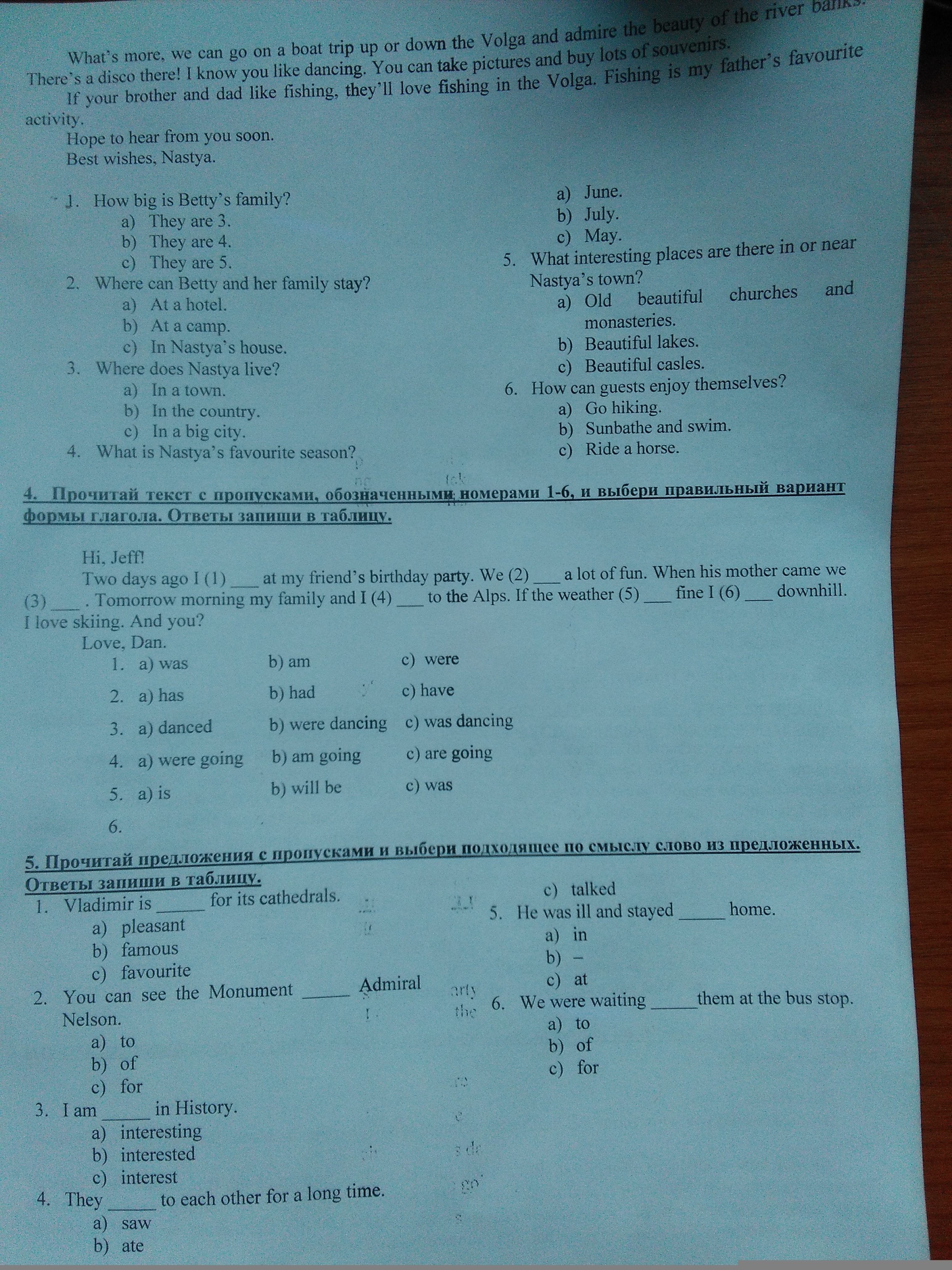 Тест к упражнению на чтение не могу помочь из-за отсутствия части текста.Упражнение [4]1a2b3b4c5a6 will ski Упражнение [5]1b2a3b4c5c6c