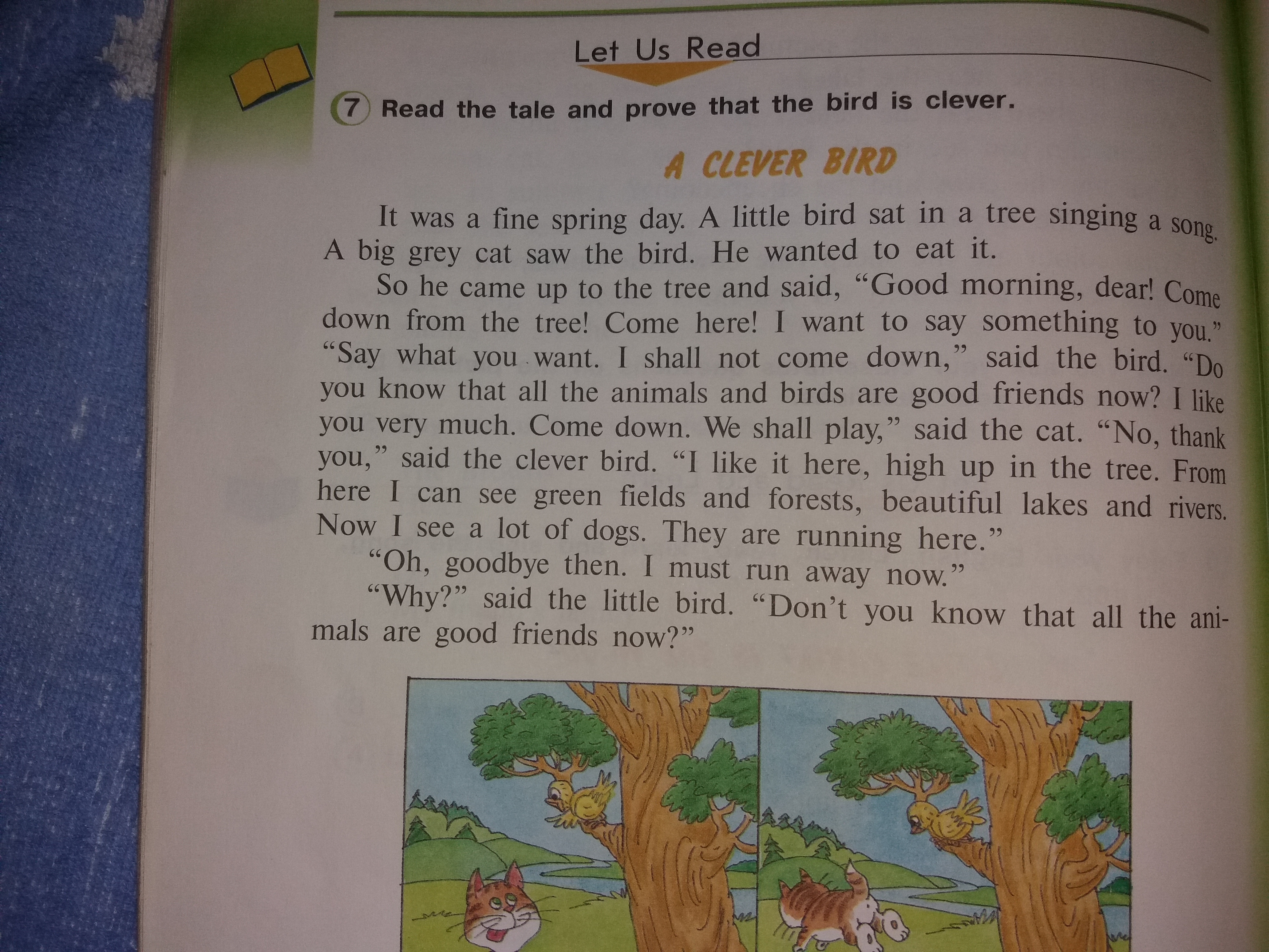 "Почему?"- сказала птичка "Разве вы не знаете, что все животные теперь являются хорошими друзьями?".