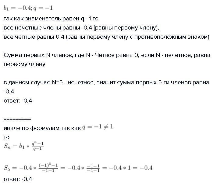 в данном случае N=5 - нечетное, значит сумма первых 5-ти членов равна -0.4