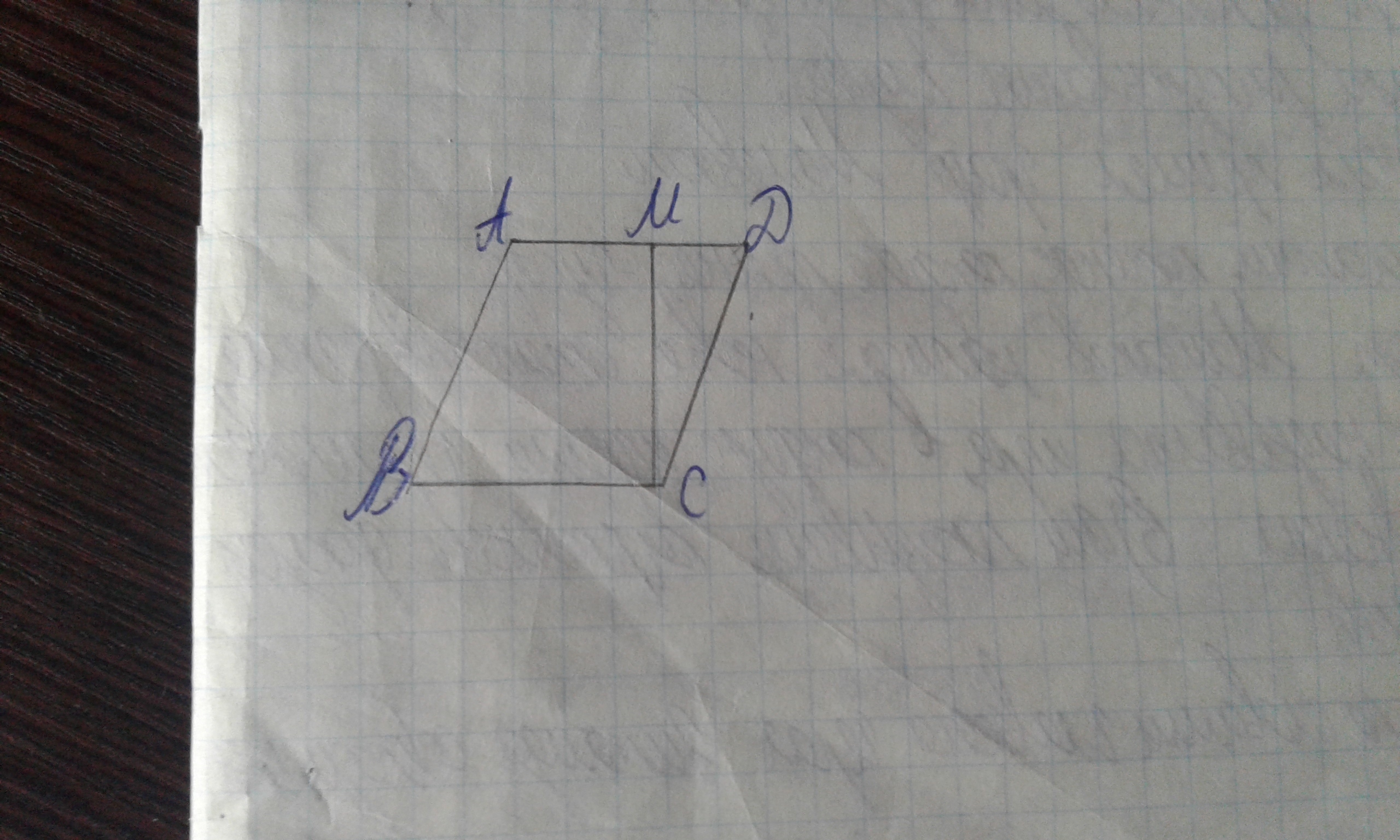 Рассмотрим ▲CMD: CD= 4 см (по условию), ∠DСМ= 180°- ∠BAD= 180° - 150°= 30° (по свойству ромба), т.к в ▲CMD ∠CMD= 90° (ведь CM - высота), то по решениям прямоугольных треугольников: катет равен произведению гипотенузы на косинус прилежащего угла, значит CM= CD* cos 30°= 4см *√3/2 = 2√3 см