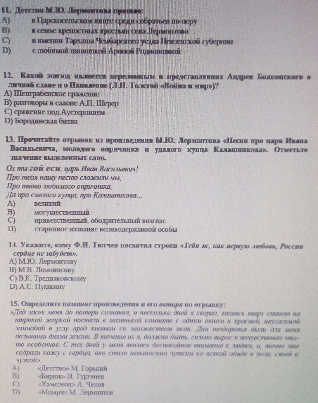 11. С) 12. С) 13. С) 14. D) 15. А)