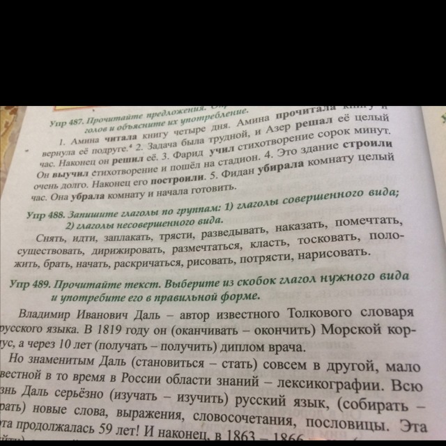 глаголы не совершенного вида:идти. трясти. разведывать. помечать. существовать. дирижировать.класть. тосковать. брать.рисовать.