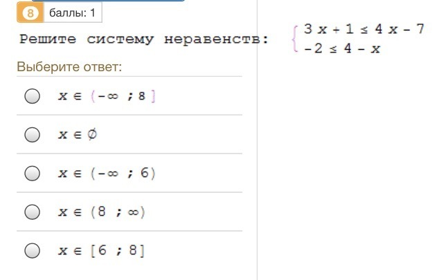 х € (8;бесконечность)