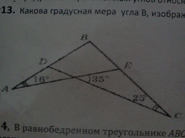 помогите пожалуйста не могу понять как решать завтра надо уже здать..какова градусная мера угла В,изображенного на рисуне.?