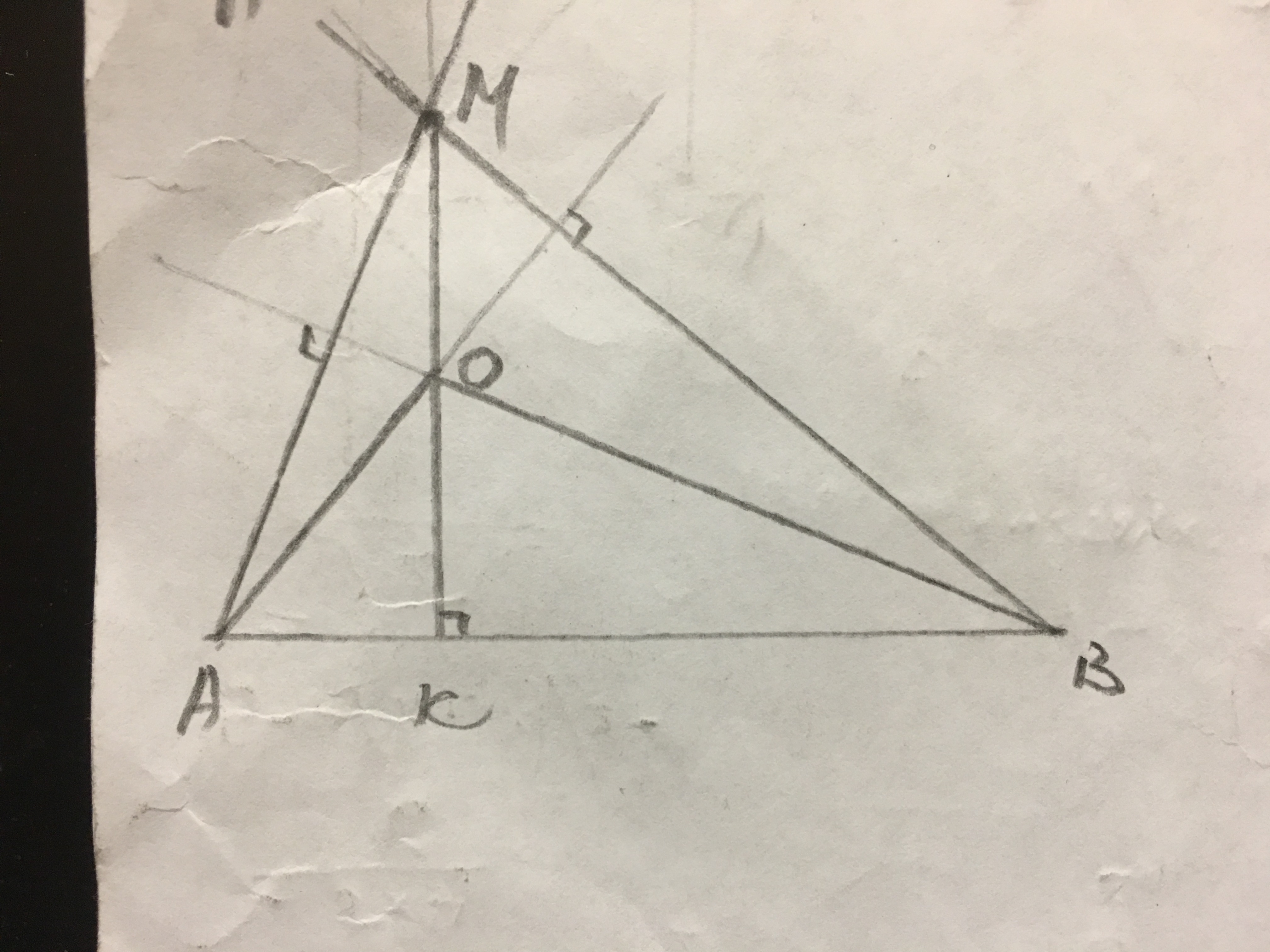 Высота треугольника пересекаются в одной точке, называемой отроцентром треугольника, значит высота ОК, проведённая к стороне АВ, проходит через точку М, следовательно МО⊥АВ.