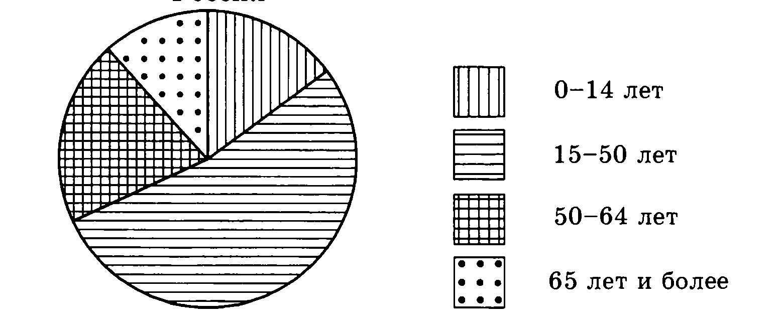 на диаграме показан возрастной состав населения России определите по диаграмме в каких пределах находится доля населения до 14 лет