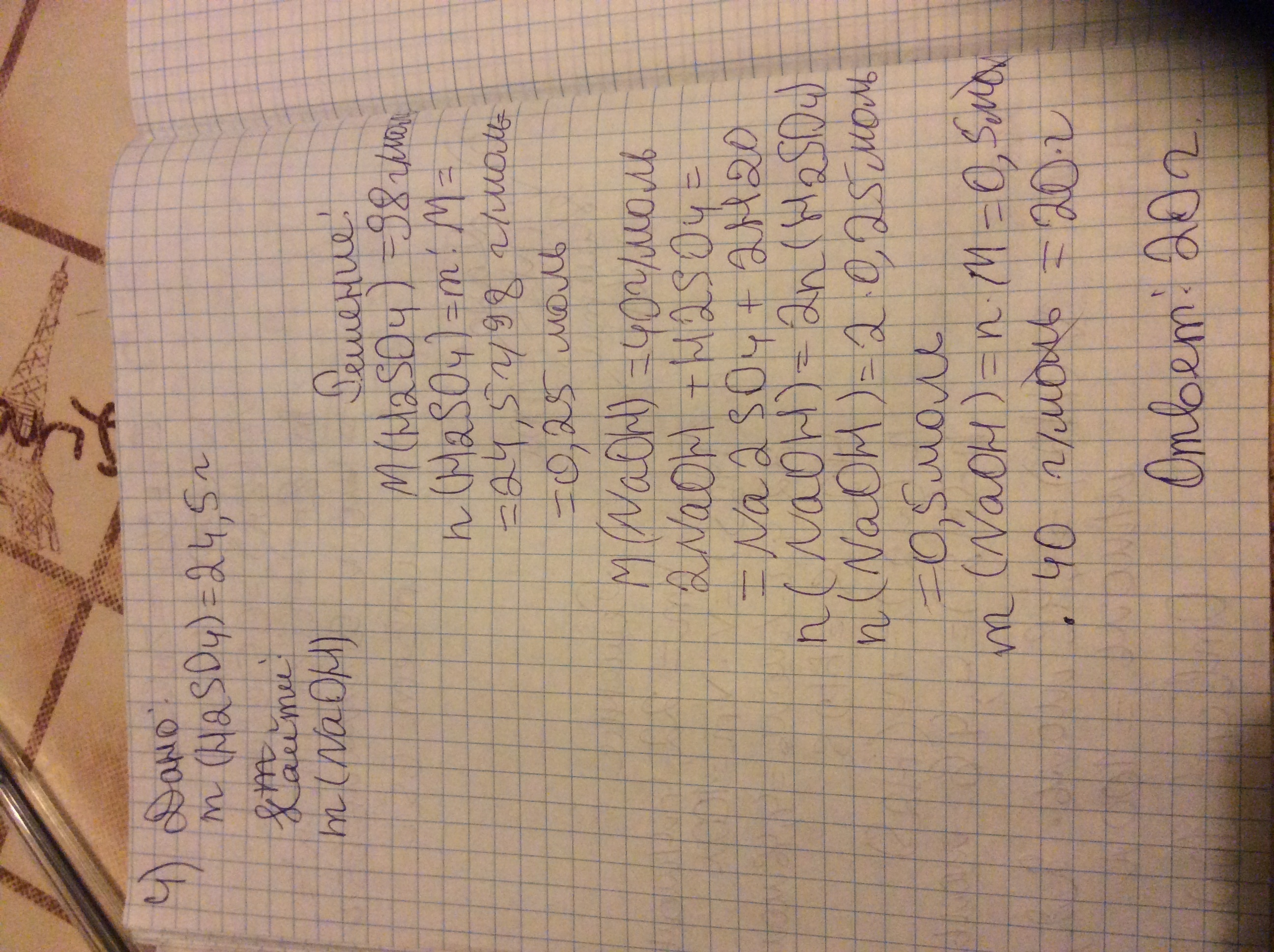 Какая масса гидроксида натрия вступит в реакцию с 24 , 5 г серной кислоты ( 10 г , 20 г, 30 г )