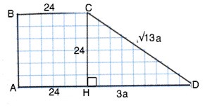 Косинус острого угла прямоугольной трапеции равен 3/корень из 13. Найдите её большее основание, если меньшее основание равно высоте и равно 24.