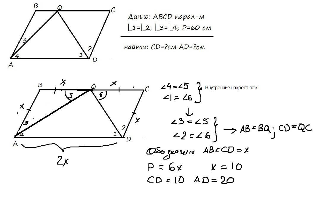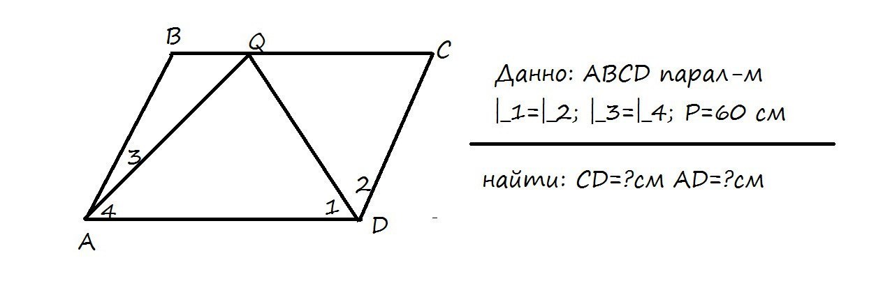 По условию угол 3 = угол 4. А на чертеже из условия это не просматривается.