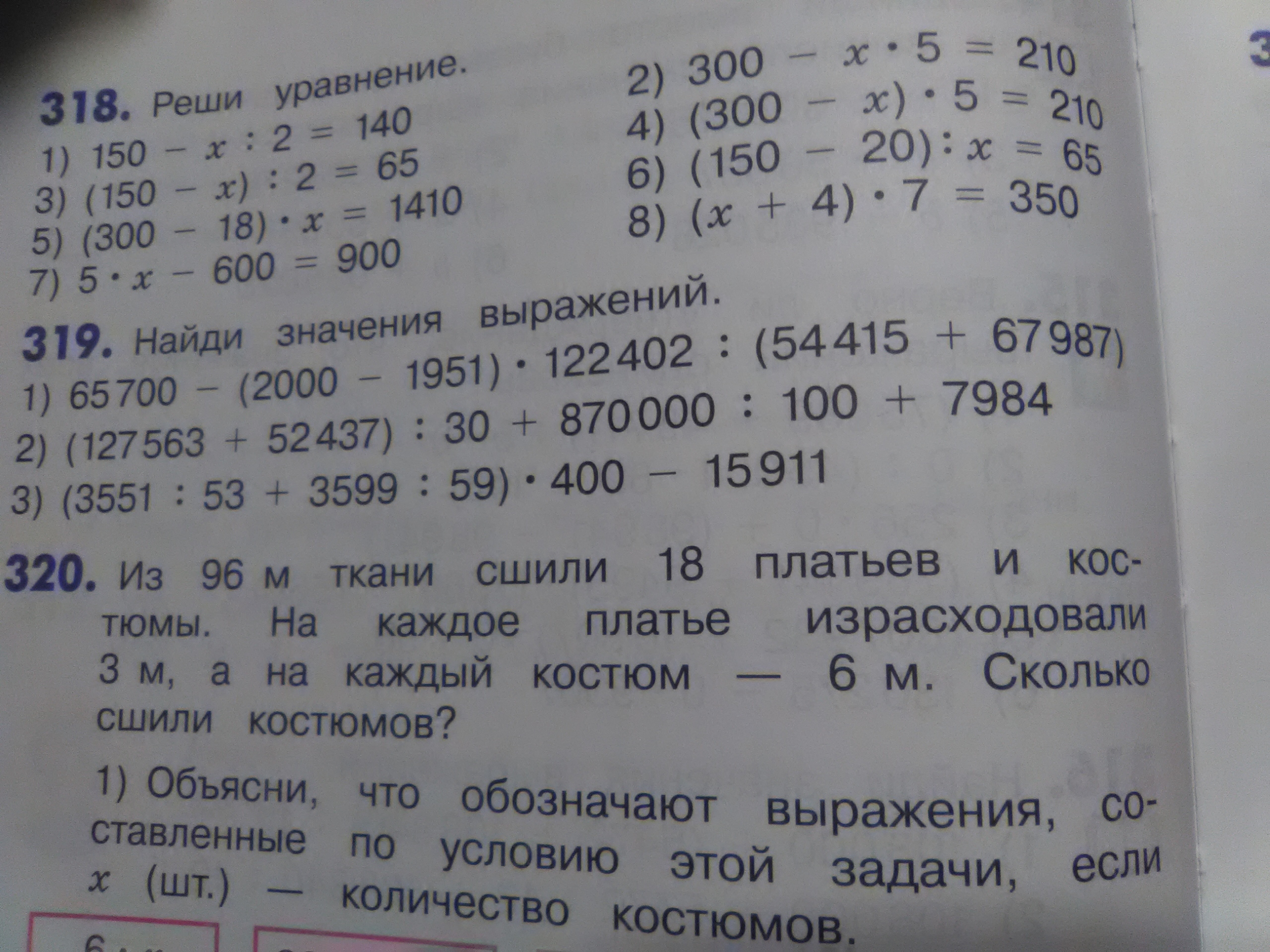 Номер 319. Расставить порядок действий, посчитать промежуточные ответы и написать сам ответ.