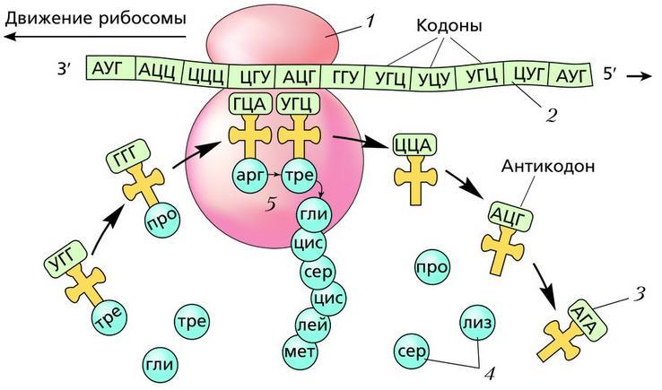 3. Собственно сам процесс синтеза белка называется трансляцией (передача информации).