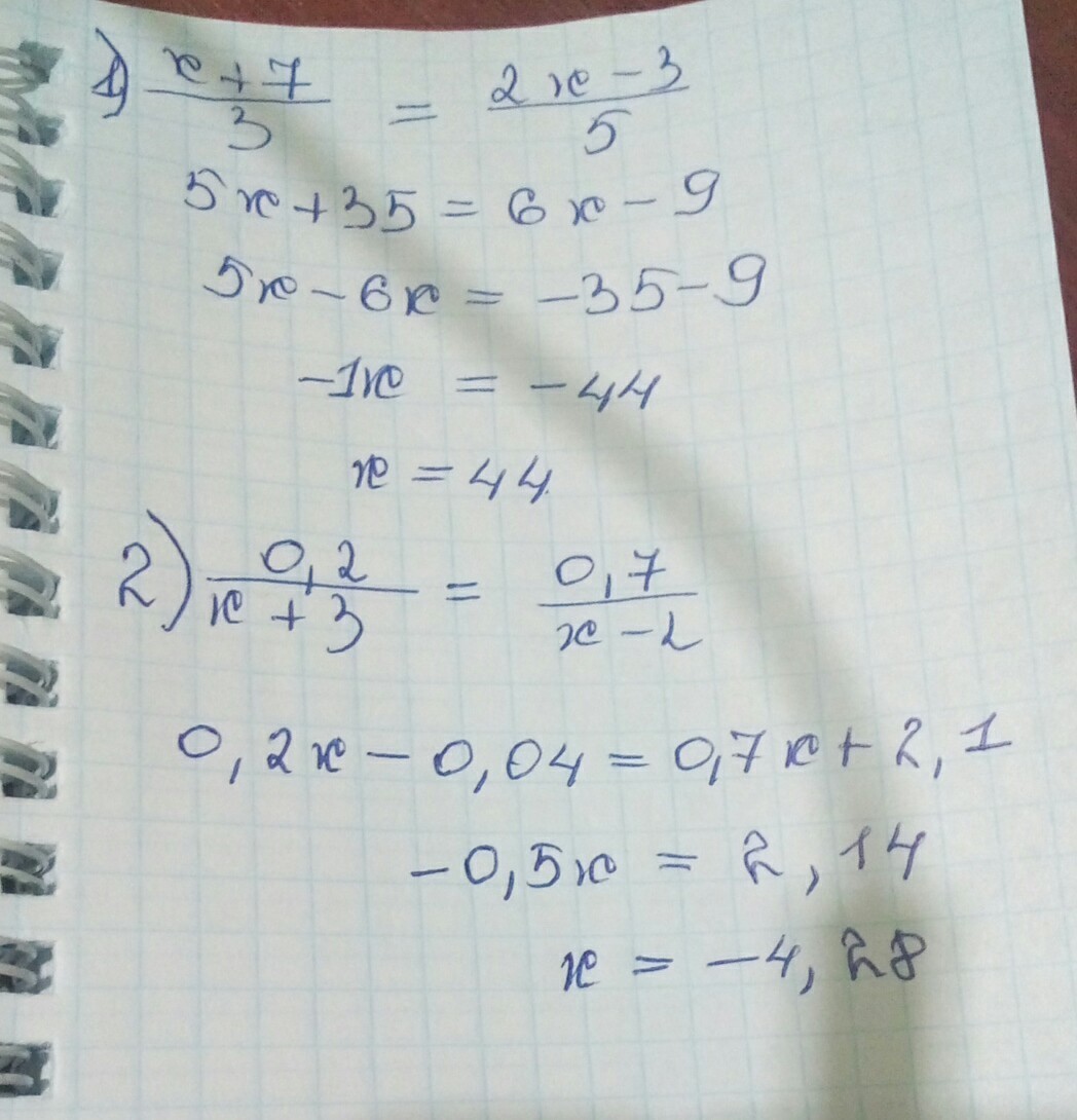 0,2х-0,4=0,7х+2,1
