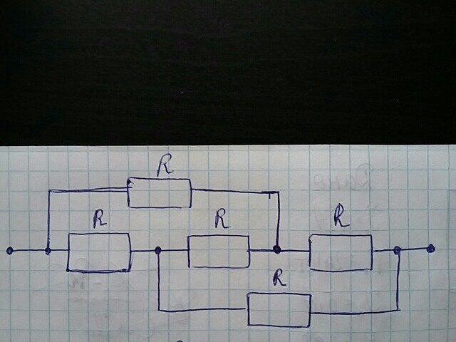 Общее сопротивление цепи равно сопротивлению одного резистора = 1 Ом.