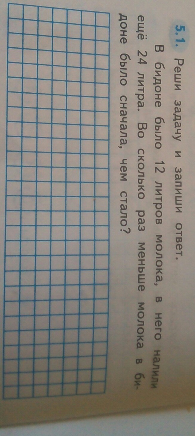 в бидоне было 12 л молока а него налили еще 24 Во сколько раз меньше молока в бидоне сначала чем стало