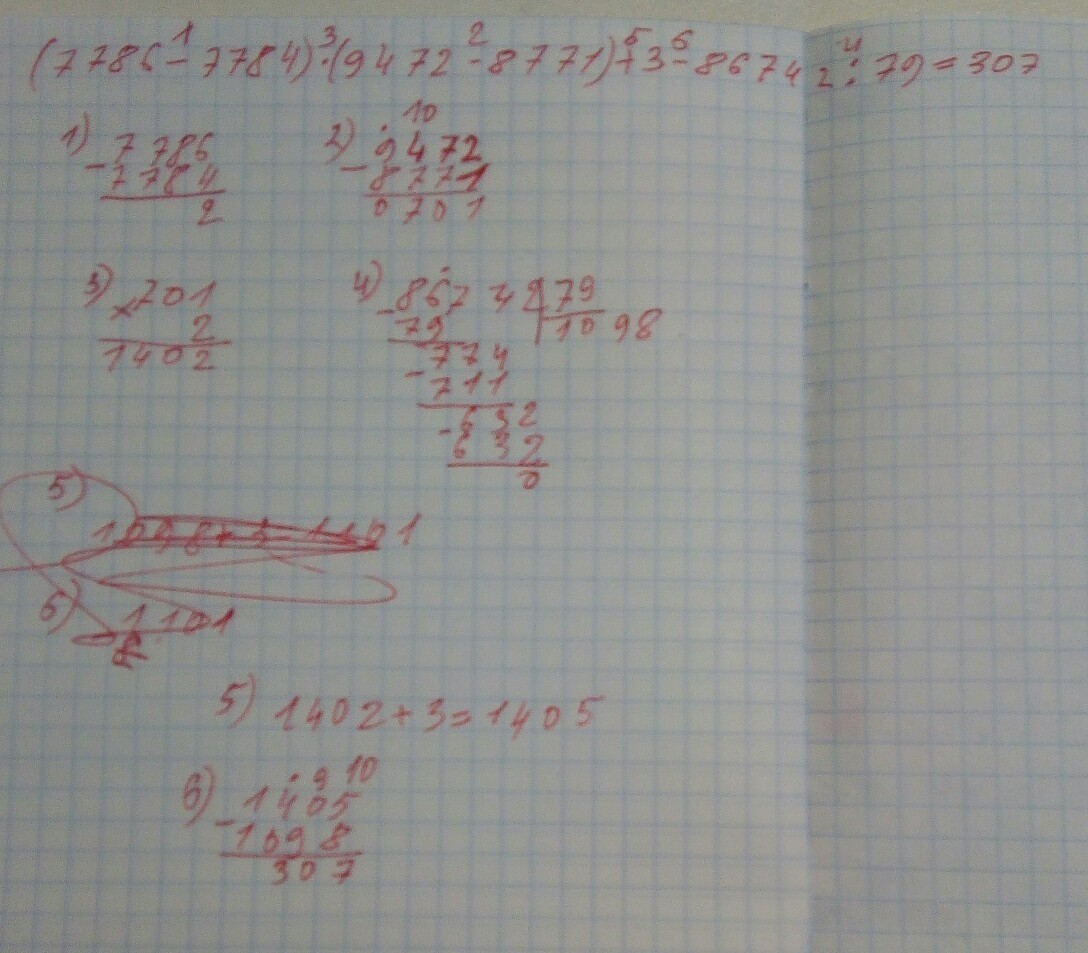 (7786 - 7784) · (9472 - 8771) + 3 - 86742 : 79 Пж помогите решить дам 10 баллов решить по дейвствиям я знаю ответ но ХЗ как решить по действиям ПЖ СРОЧНО!!!!!!!!!!!!!!! (Если корява написал необисуть