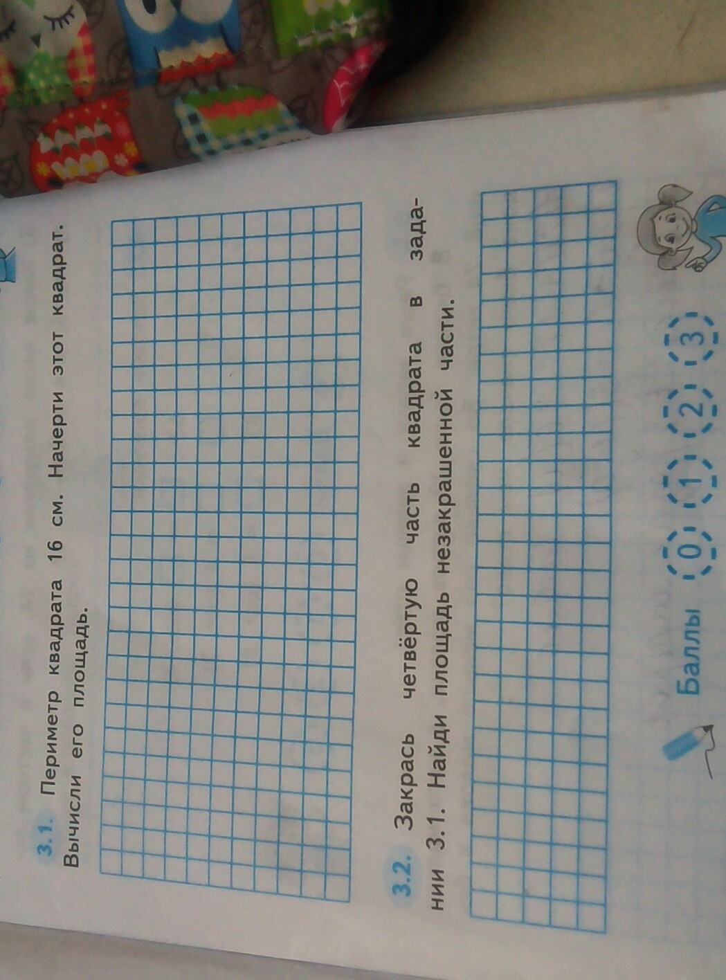 3.2) когда квадрат начертишь 4 клетки вправо, 4 вниз, 4 влево и 4 вверх, потом вправом верхнем углу квадрата 4 клетки закрашь : 2 вправо, 2 вниз, 2 влево и 2 вверх.