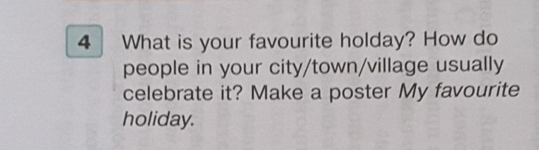 My favourite holiday is New Year.People in my town gether and enjoy delicious food and watch fireworks.
