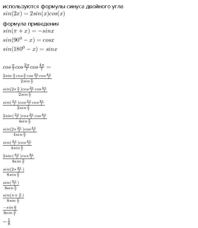 используются формулы синуса двойного угла