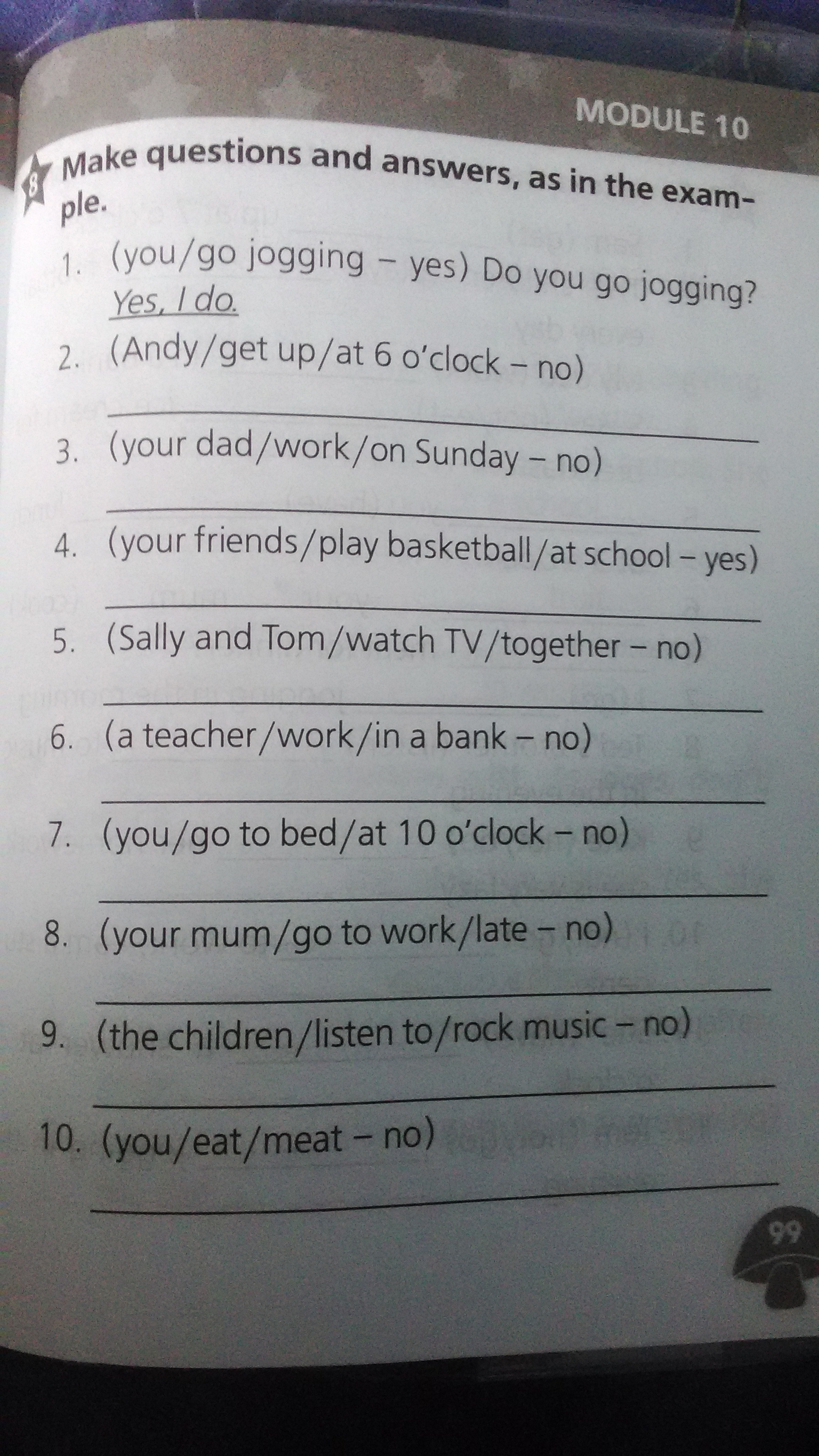 7. Do you go to bed at 10 o'clock? No, l don't.