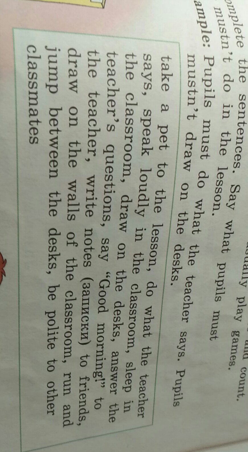 Взять питомца на урок.Делать то что говорит учительница.Говорить громко в классе.Спать в классе.