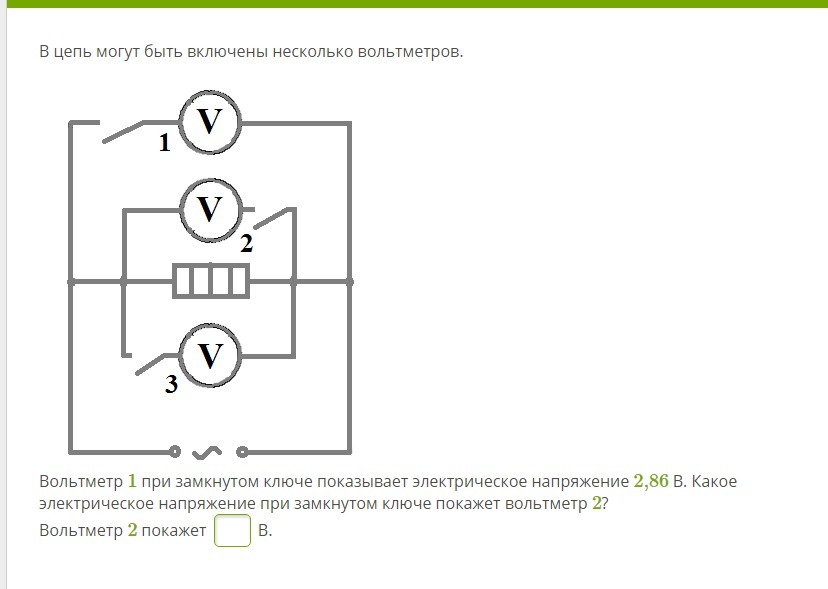 Хороший вольтметр - это по-существу разрыв в цепи. Тогда все вольтметры должны показывать одинаковое значение. Получаем ответ: 2,86 В.