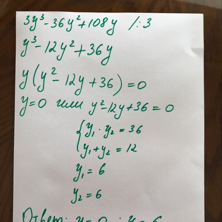 3y³-36y²+108y = 3у(у²-12у+36) = 3у(у-6)²