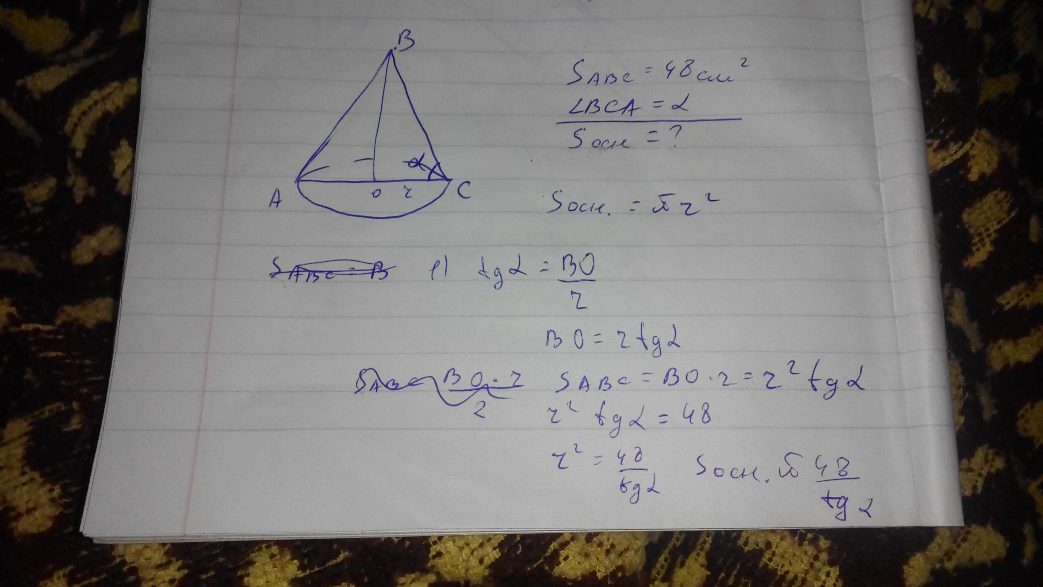 2)SABC=BO*r=r²*tgα