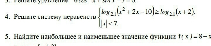 x² + 2x -10 ≥ x +2, ⇒x² +x -12 ≥ 0 корни -4 и 3, реш-е:(-∞;-4]∪[3; +∞)