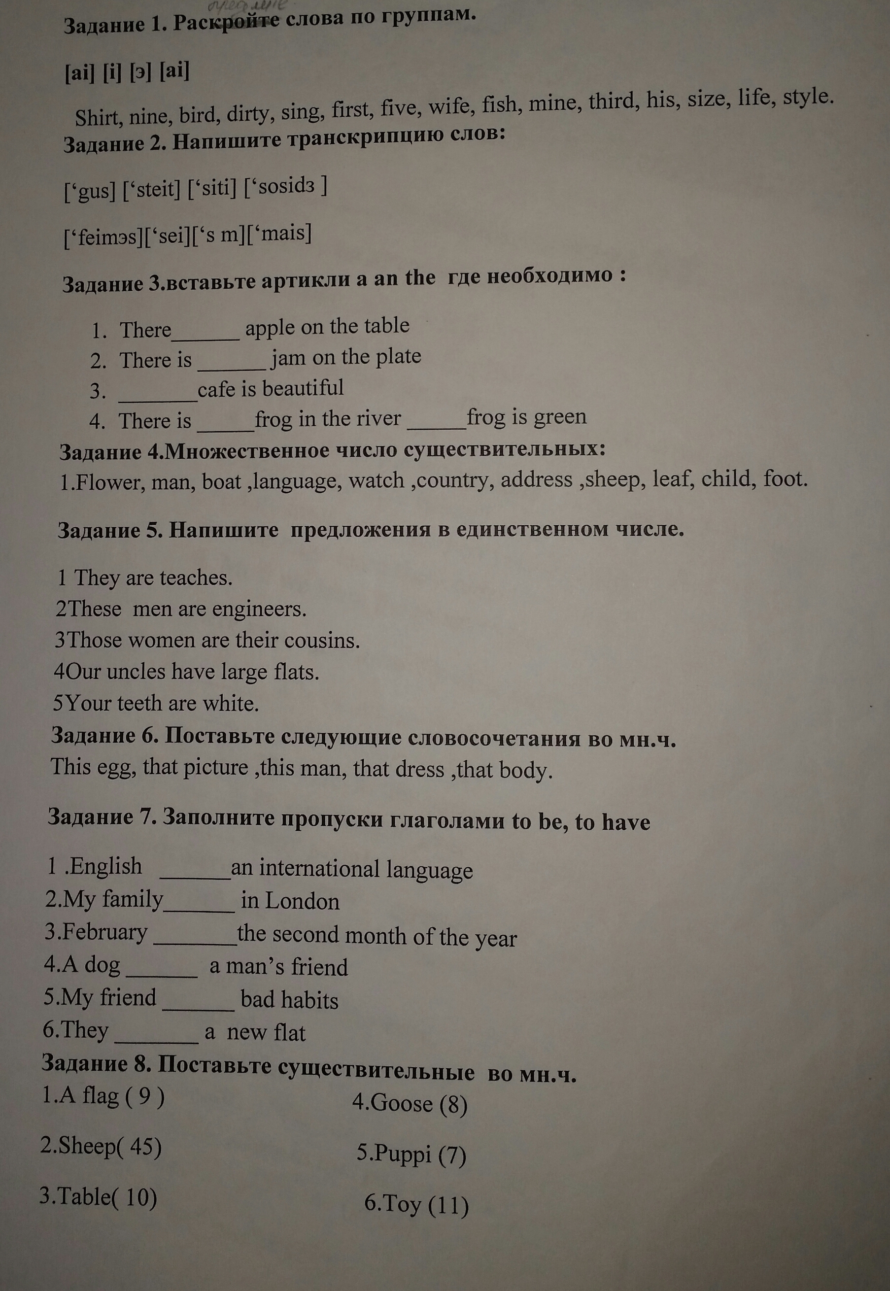 6-аналогично в задании( нет мн.ч.)