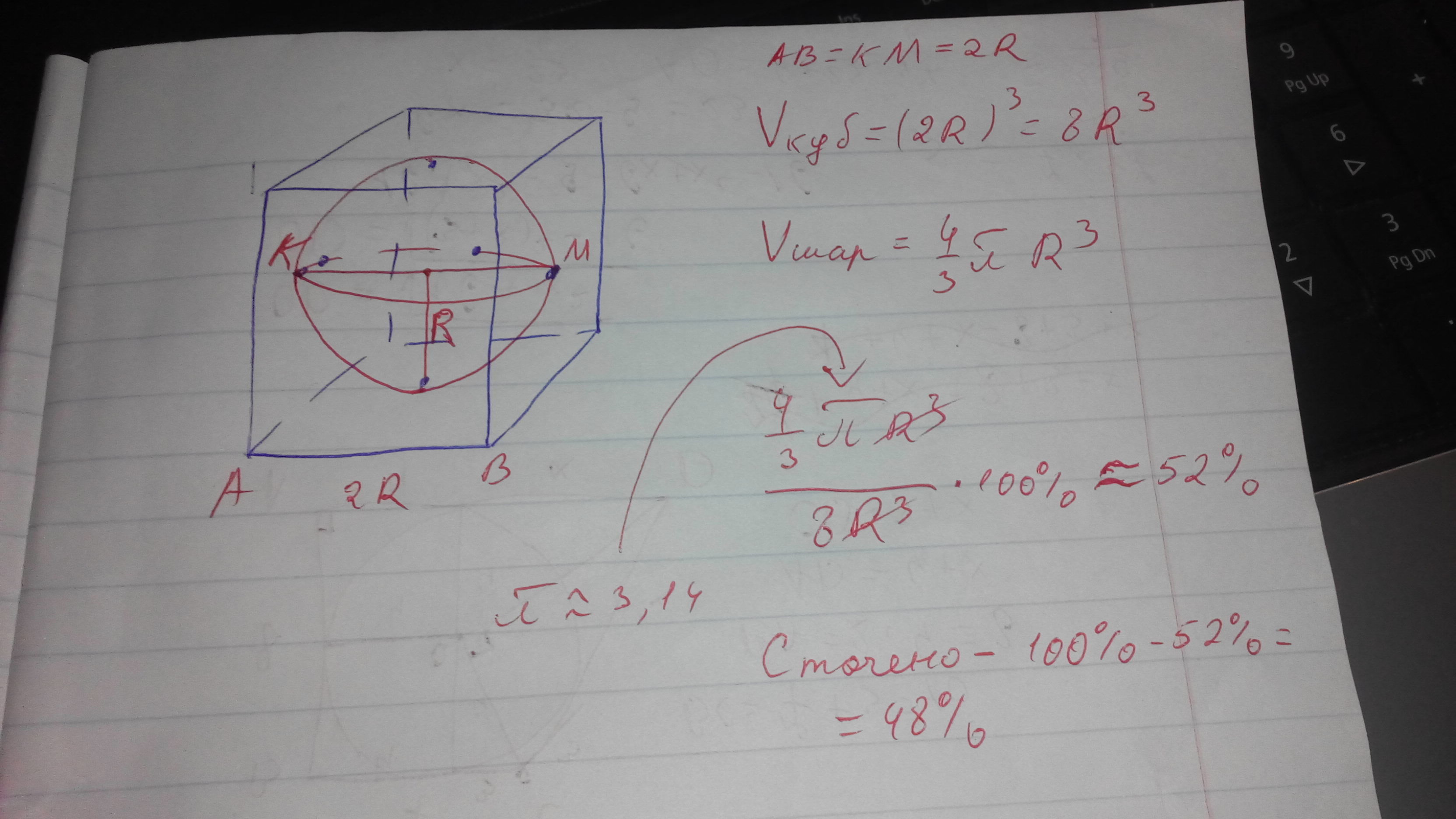 Vкуб=(2R)³=8R³