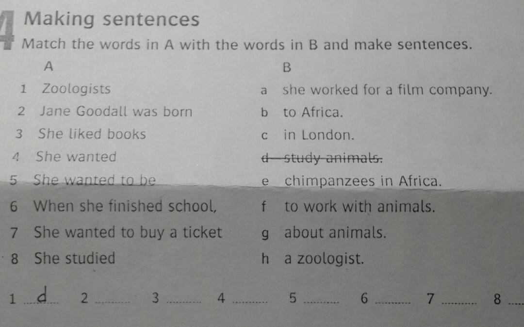 Просто переписываешь слова без букв и цифр, например:Jane Goodall was born in London