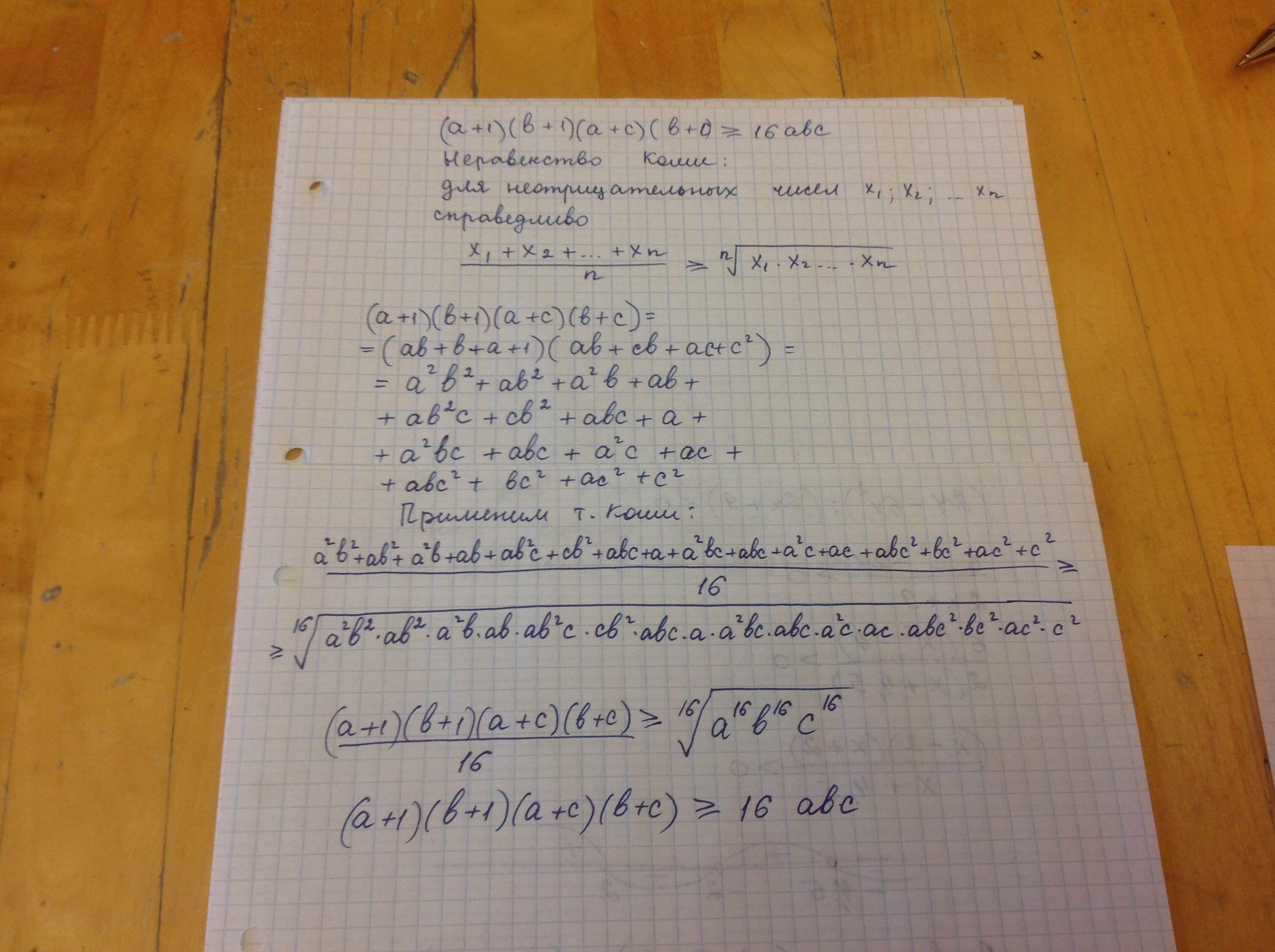 докажите что для любых неотрицательных чисел a b c выполняется неравенство (a+1)(b+1)(a+b)(b+c)>=16abc