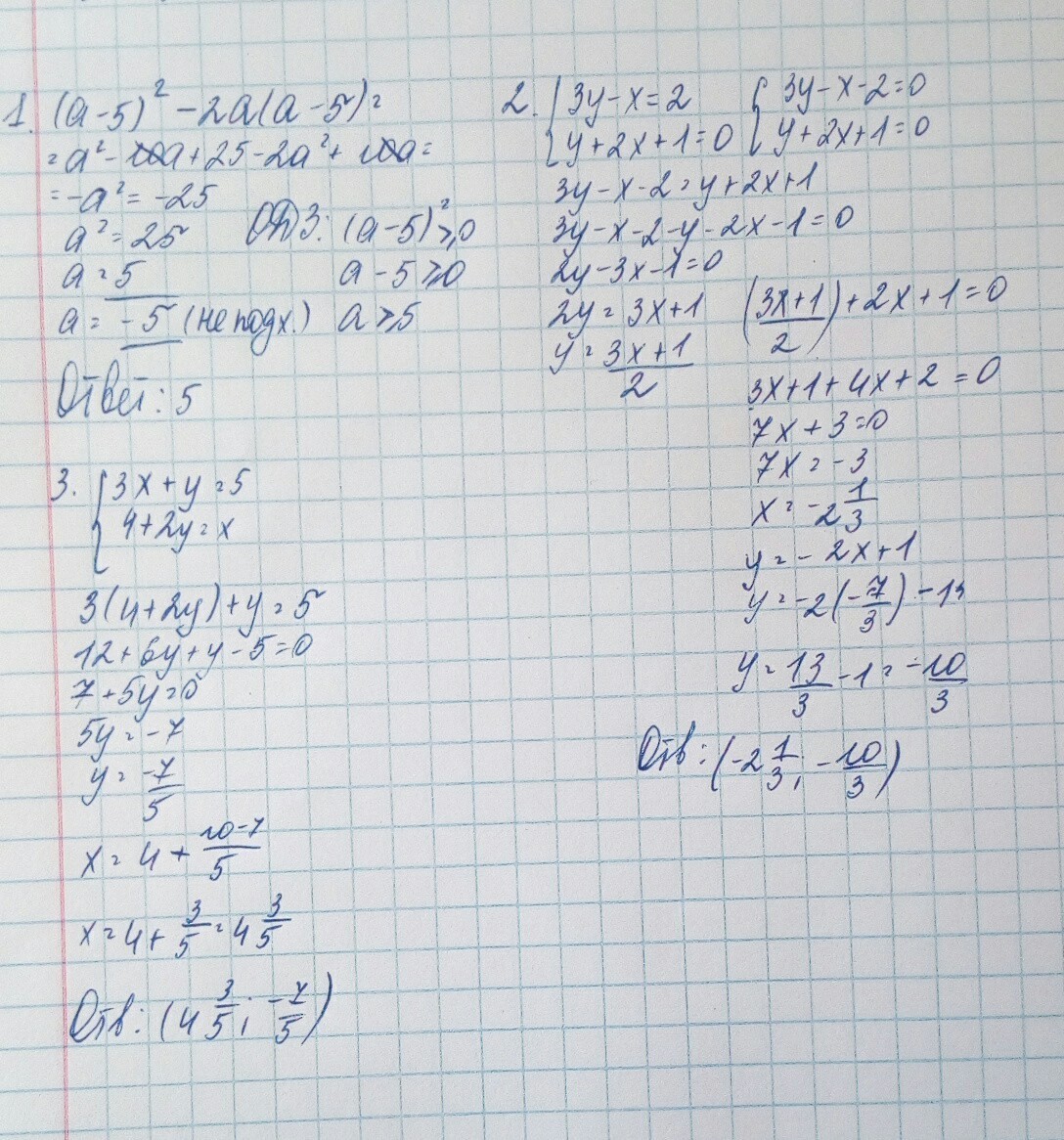 1. Упростите выражение (a-5)^2-2a(a-5) и найдите его значение при а=-3/5